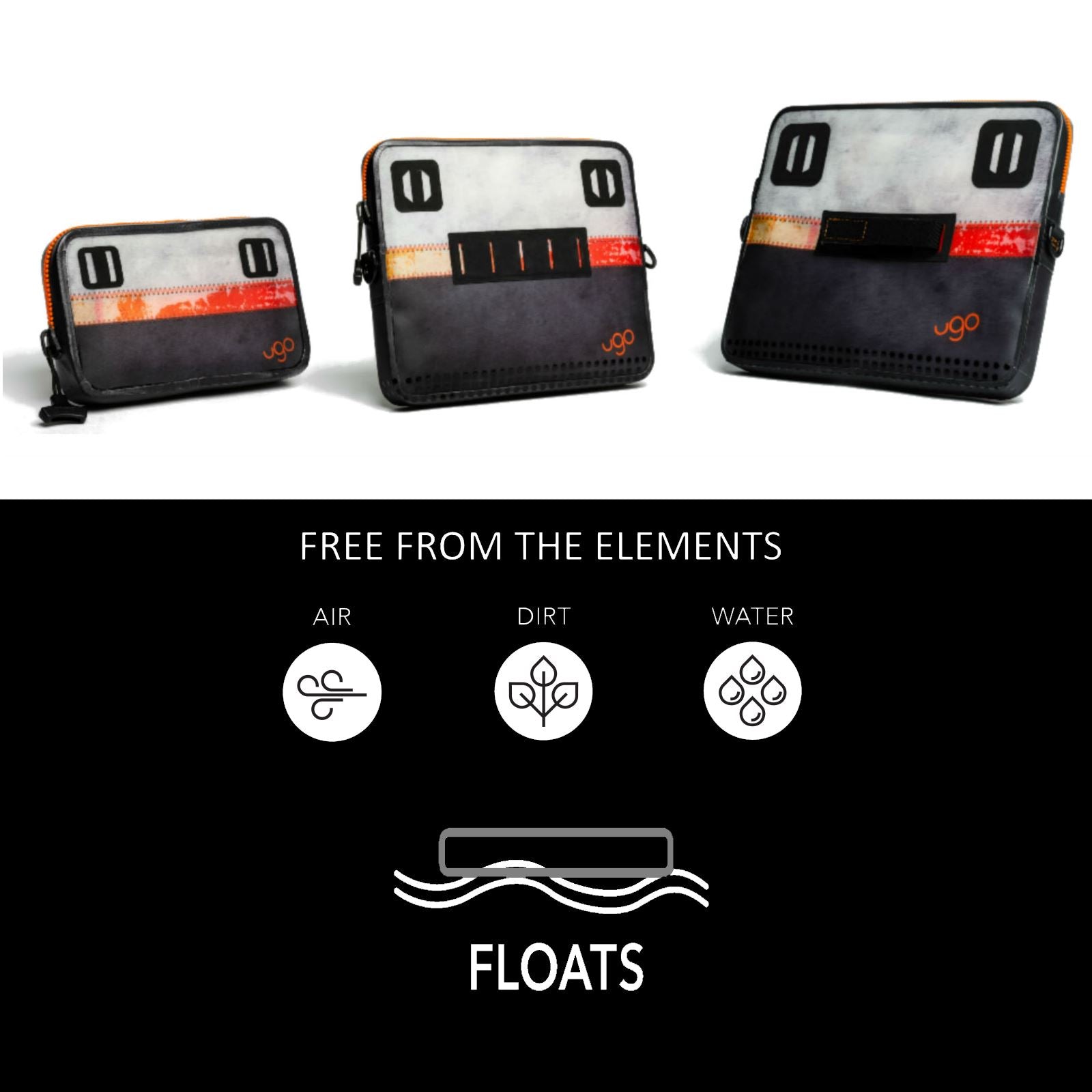 Nothing compares to the reliability and functionality of the 100% waterproof ugo® TABLET XL that floats featuring our uZIP™ zipper technology. Fitting tablets up to 13”, use yours to access apps, watch a movie or read a book, and even sign documents without removing it from the bag. So whether you are going to work, going ashore, going to the beach, or headed to the cabin, we’ll keep your electronics safe and protected from the elements!
